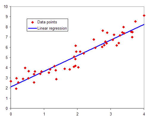 데이터의 분포가 빨간 점과 같은 때, 최적의 파란색 선을 그리는 것이 linear regression의 목적입니다.